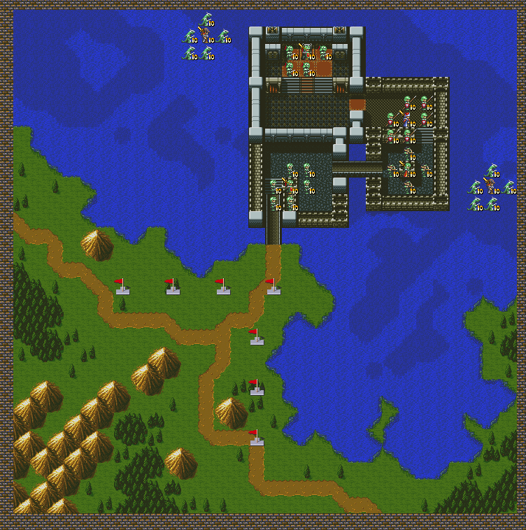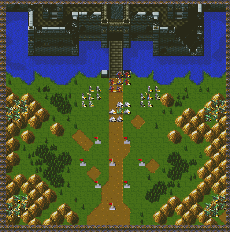 兰斯会在第五回合的时候,从我军后方中间出现。第七回合,魔族的飞龙会从地图的上方出现。