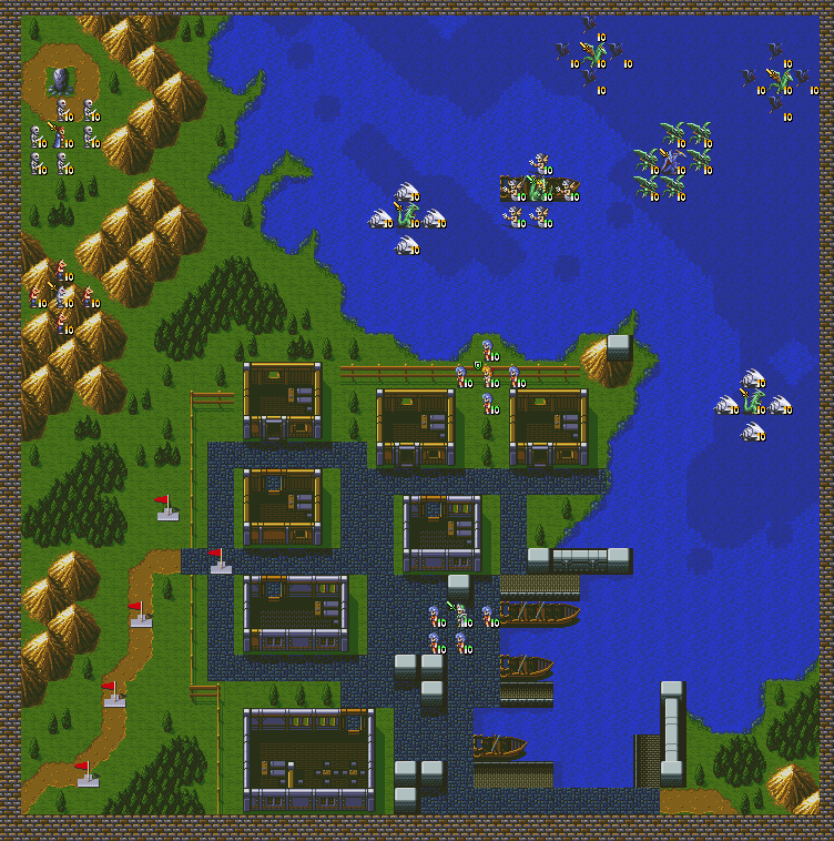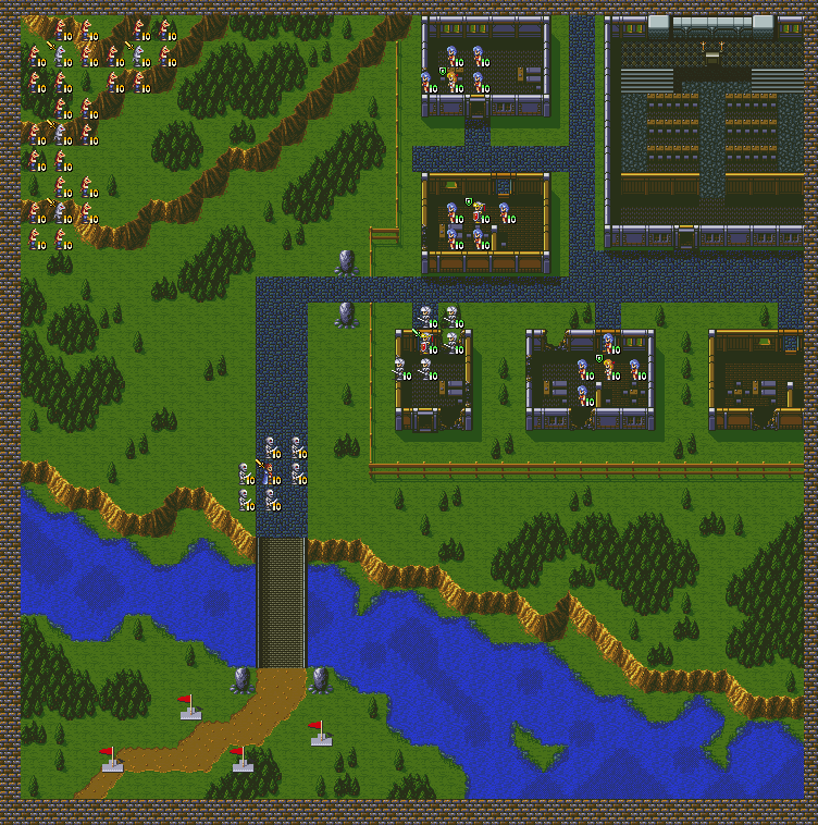 第十回合,敌人援军会从地图的南面和西面出现——南面是骑兵,西面是长枪兵。